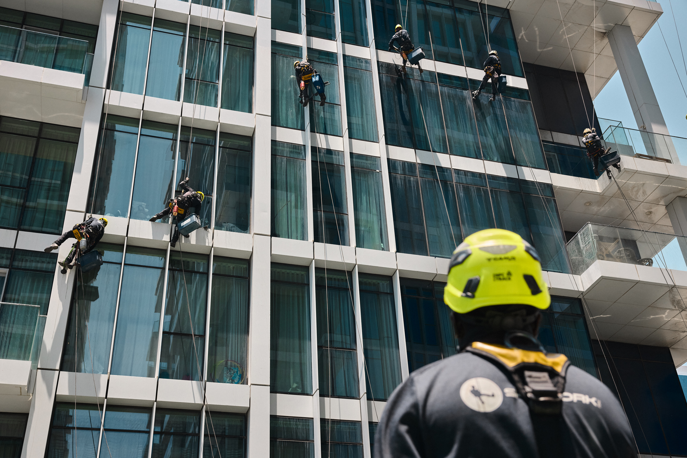 Sky-Work is proud to serve as the trusted rope access partner for Sonder at the iconic Al Fattan Downtown Towers twin 150-meter high-rises in the heart of Dubai. Under a long-term service agreement, we ensure the façades remain spotless and presentation-ready for Sonder’s discerning guests.